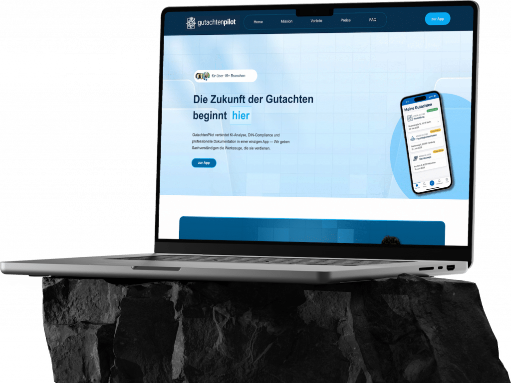 Gutachtenpilot verfügt nun über eine klare und moderne Landingpage, die die Funktionen der App verständlich erklärt und potenzielle Nutzer gezielt anspricht. Die Seite bietet eine zentrale Informationsplattform für Interessenten und unterstützt die Präsentation der App im digitalen Raum.