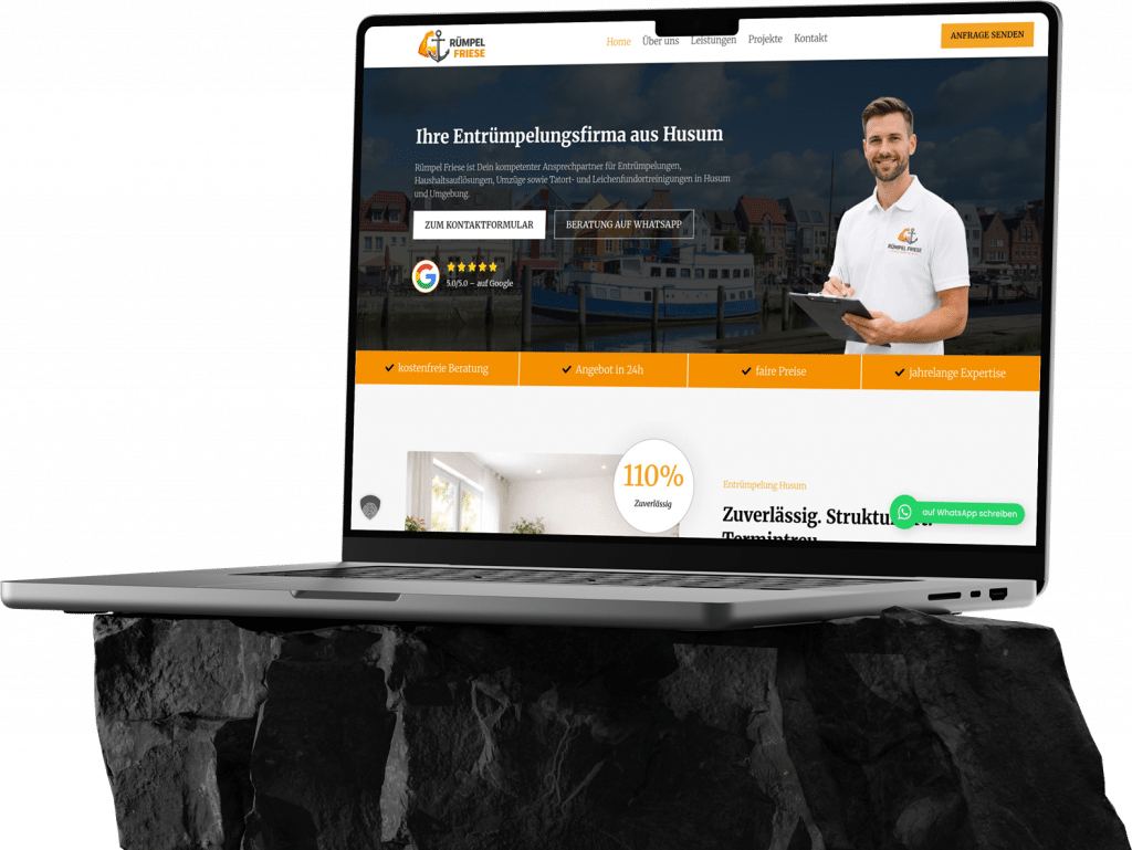 Für Rümpel Friese wurde ein moderner Webauftritt entwickelt – klar, aufgeräumt und genau abgestimmt auf die Zielgruppe im Bereich Entrümpelung und Haushaltsauflösung.